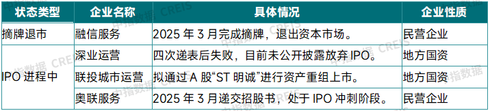 值得注意的是,资本市场也出现了已上市的物业公司基于自身战略选择,主动退出资本市场的现象。2025年2月17日,融信服务控股股东融心一品有限公司提出的私有化建议,获法院会议及股东特别大会批准。2025年3月18日,融信服务正式完成了私有化流程,退出资本市场,成为第二家主动从港股主板退市的物业企业。