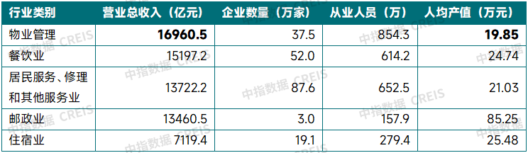表:2023年第三产业部分劳动密集型服务业关键指标对比