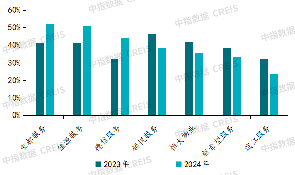 部分企业社区增值服务的毛利率变动较大。宋都服务、佳源服务、德信服务等企业2024年社区增值服务毛利率水平提升均在10个百分点左右;而领悦服务、恒大物业、新希望服务、滨江服务等的毛利率却出现显著下降。
