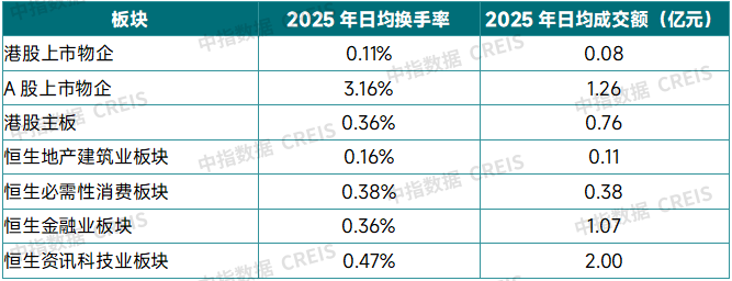 表:2025年港股上市物企与其他市场或板块流动性指标对比(截至6月24日)