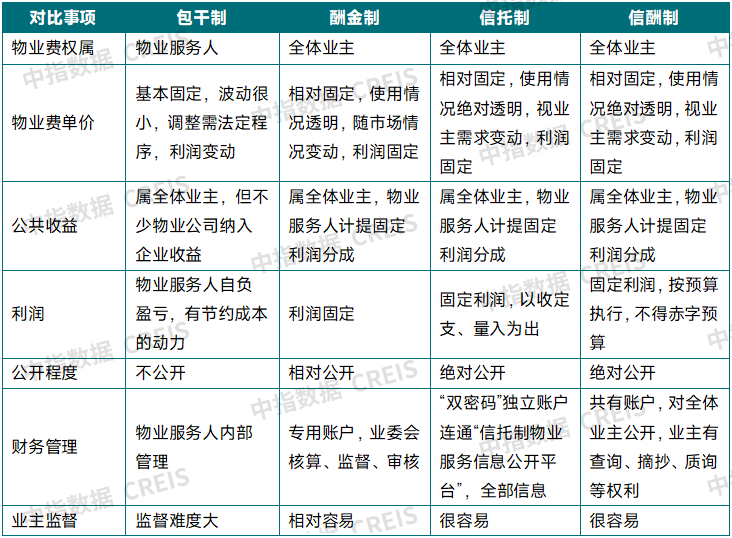 创新收费机制,提升物业收费信息的透明程度,是化解市场机制失灵问题的重要抓手。信托制是在传统的酬金制与包干制以外,一种新型的物业费模式:物业公司通过信托账户支取物业费,公开透明,避免业主产生误解。信托制物业费属于酬金制的改进,将传统物业的双方买卖关系升级为“委托-受托-受益”的信义关系。信托制物业费最大特点是权责清晰,资金流向全程透明,保证物业服务质价相符。业主将物业费及公共收益归集到一个透明的业主共有资金池作为物业信托基金,业主大会、业委会为委托人,邀请信托机构担任信托受托人,全体业主为信托基金受益人,物业公司为物业服务的受托人。受托人管理物业信托基金,物业公司依照合同提取酬金,并根据信托基金的资金情况提报预算并支取物业费;全体业主通过物业信托基金的查询密码监督账户收支。不过,该模式较为复杂,专业化程度高且需要业主高度自治,目前尚未大面积普及应用。