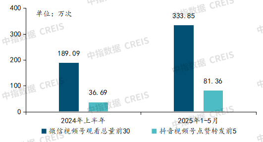 2025年1-5月,微信视频号排名前30的企业视频号观看总量为333.85万次,抖音视频号排名前5的企业点赞+转发量总计81.36万次,均已大幅超越2024年上半年的数据,展现了充分的发展潜力。视频号作为全新的媒体流量平台,具备内容形象化、可视化、通俗化的传播特点,这是传统媒体平台所不具备的传播优势,因而在物业企业的品牌传播中有望发挥更加举足轻重的作用,是物业企业未来可以重点开拓的宣传阵地。