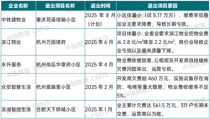 表:2025年部分物业企业退出或计划退出管理项目案例