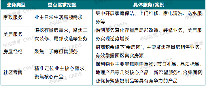 整体来看,以上四大困局可以从两方面来解决。第一,深度挖掘市场需求。既要把握存量市场下的需求转向,同时也要加强与业主间建立信任,通过高频接触不断挖掘业主的日常生活需求,精准匹配对应的服务。如融创服务深化存量房局部改造、装修业务发展,美居服务实现逆势增长;保利物业的社区零售业务主要聚焦刚需重物、节日礼品、品质标品、地理产品等几类核心产品,精准匹配业主需求。