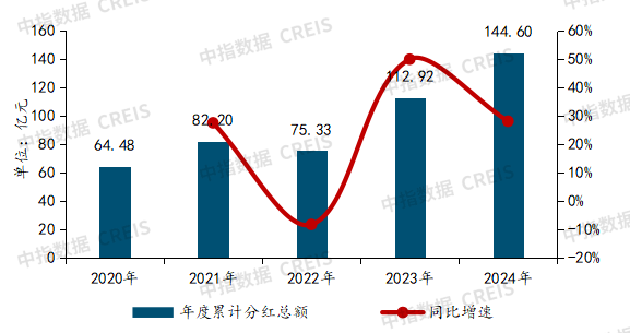 图:2020-2024年物业服务上市公司分红总金额及增长情况