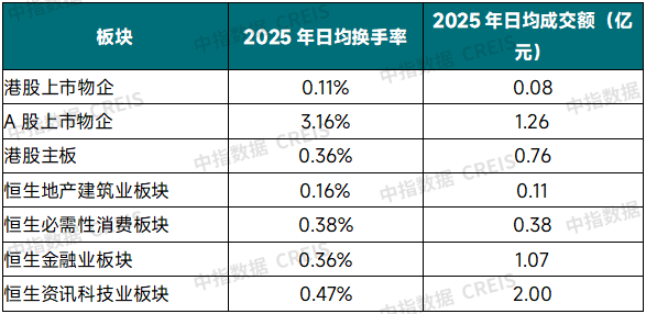 表:2025年港股上市物企与其他市场或板块流动性指标对比(截至6月24日)