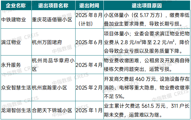 表:2025年部分物业企业退出或计划退出管理项目案例