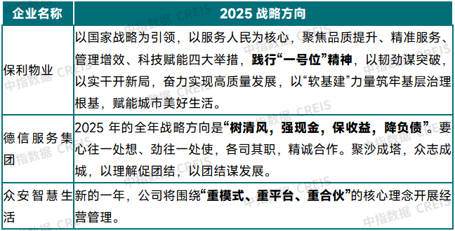 2025年是“十四五”规划收官之年,也是“十五五”谋篇布局之年。值此之际,多家物业企业基于行业与企业发展现状,在各企业年初召开的年度会议上,聚焦当下的行业热点,总结2024年以来的发展经验与教训,并据此提出了企业在2025年的发展战略。其中,市场聚焦深耕、团队人员优化、服务品质提升、严格把控风险等内容,成为本年度物业企业战略举措中提及频率相对较高的内容。